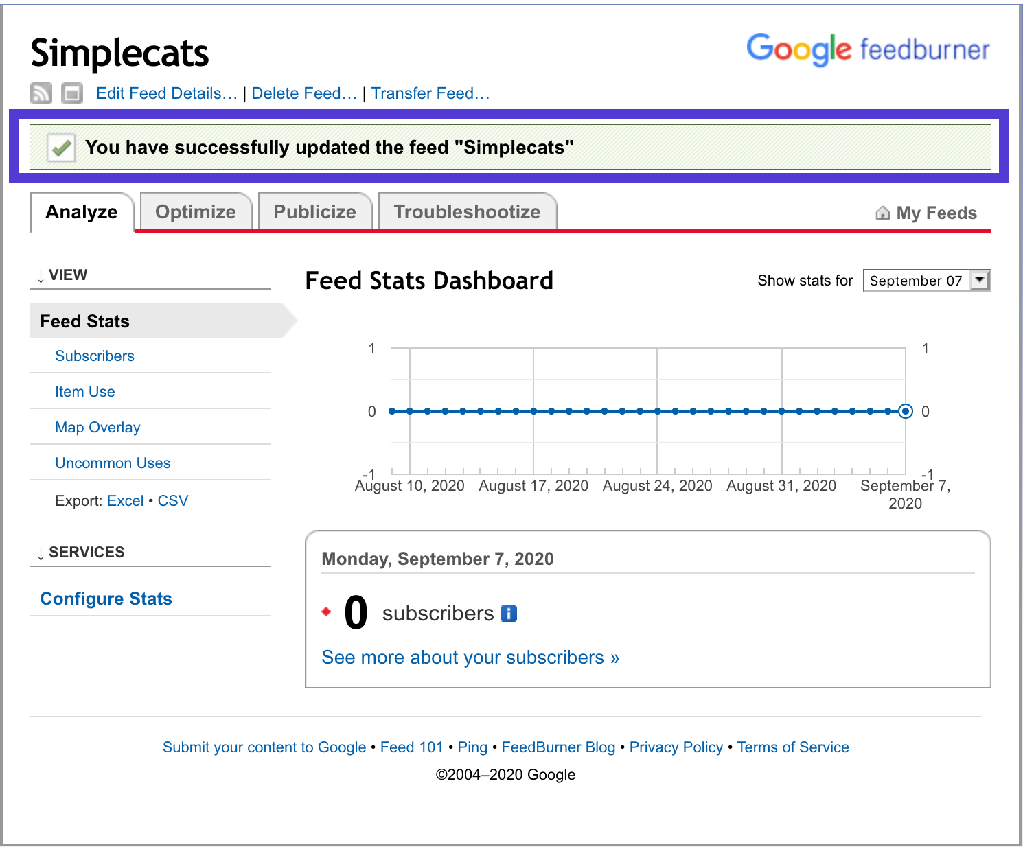 Test the 301 Redirect (see video below) by entering your old FeedBurner feed in a web browser address bar and it should open your Simplecast RSS Feed.